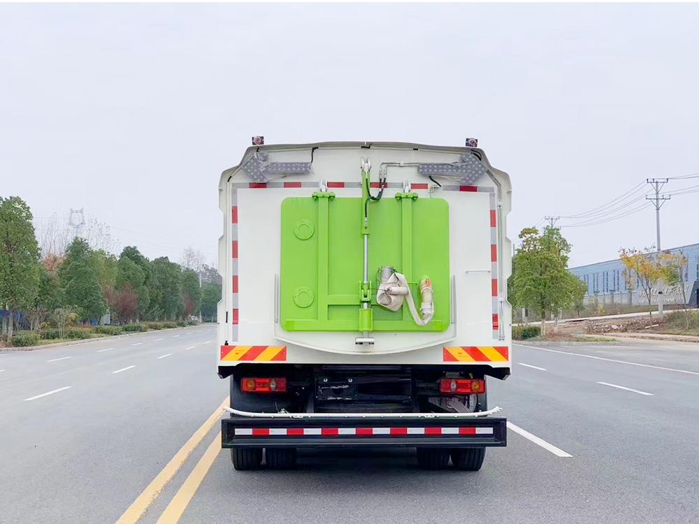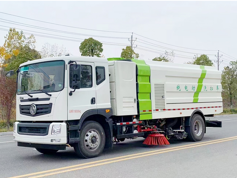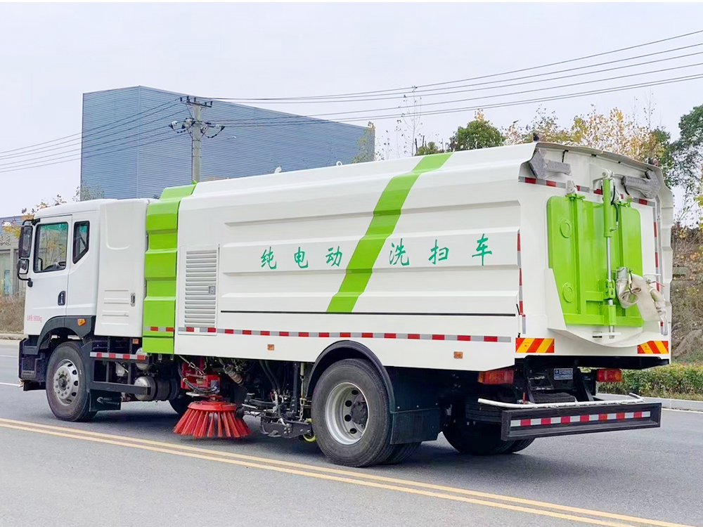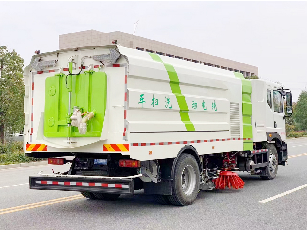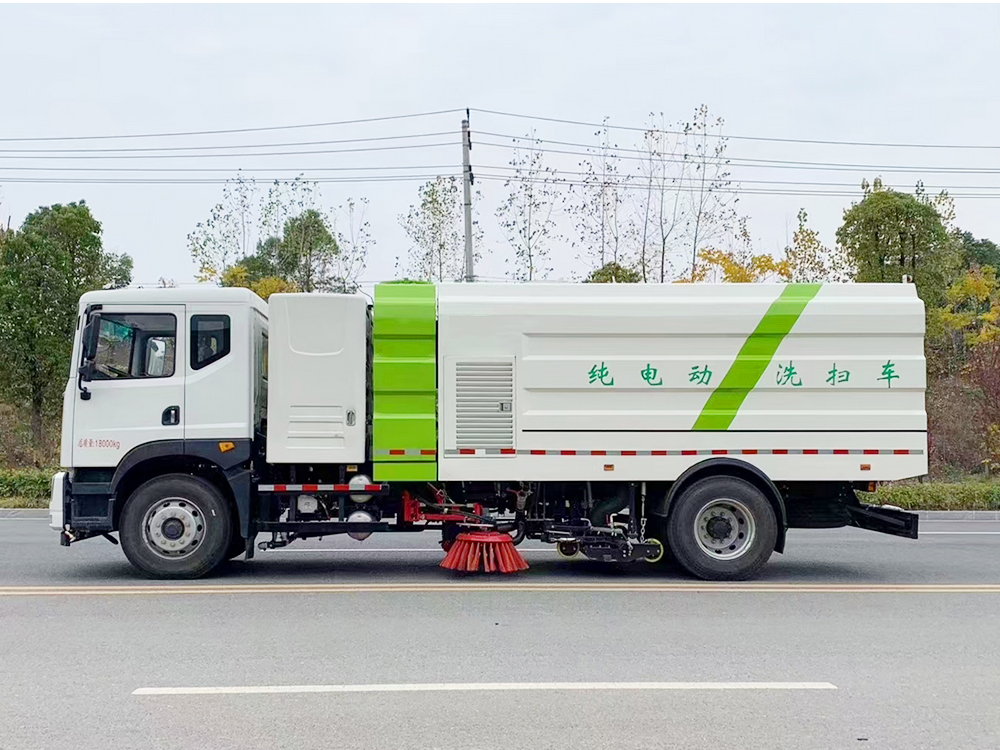 上装配置:底盘电池提供动力,永磁同步电机驱动,可根据需要实时调速,取力操作与底盘行驶系统无任何关联,用车体验感极佳。中置2扫盘,三洋马达,GTM高压水泵,皖液齿轮泵,海普瑞斯液压油缸,万向高压路沿清洗,免维护离心式风机,不锈钢水箱、垃圾箱,不锈钢高压管路、施耐德控制开关、美国传感器、尾部LED箭头灯;垃圾箱、水箱均带防溢或低水位报警装置,倒车及洗扫状态室内监控系统,尾部带电控操作系统,20M高压冲洗卷盘,最大清扫宽度3.5m,高压冲洗21m。 电气系统由底盘车电路专用工作装置操作控制电路组成。