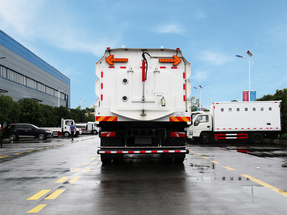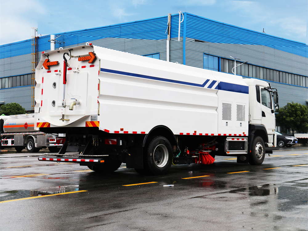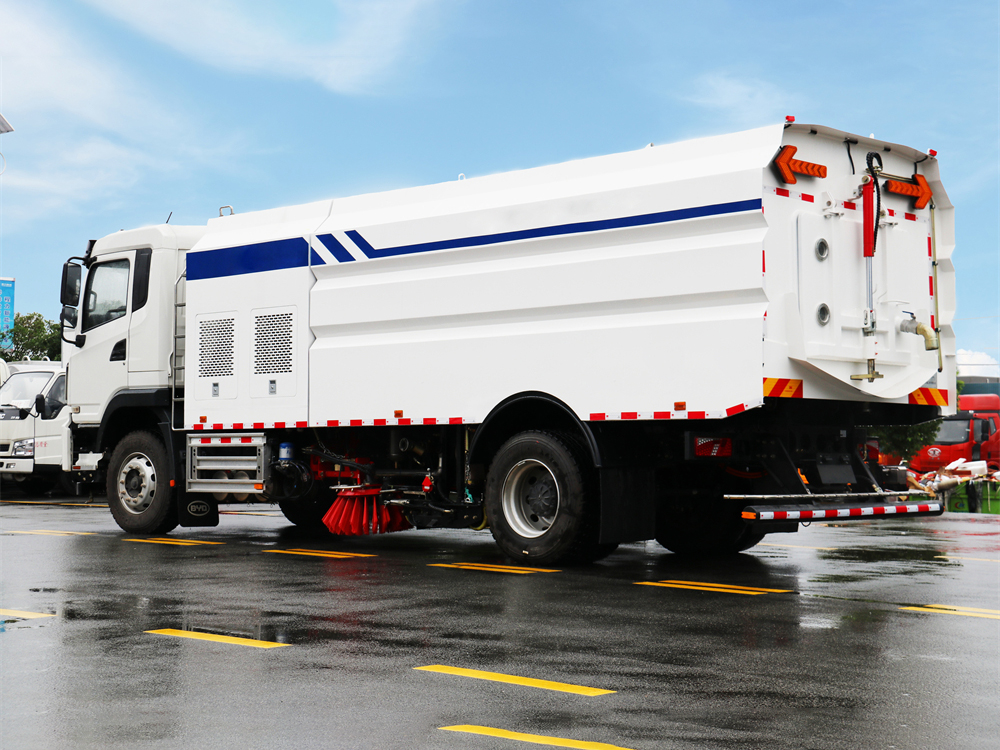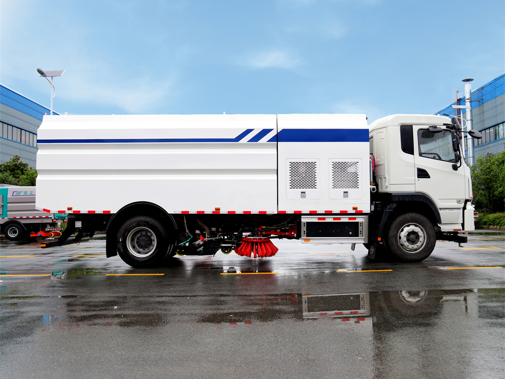 上装配置:底盘电池提供动力,永磁同步电机驱动,可根据需要实时调速,取力操作与底盘行驶系统无任何关联,用车体验感极佳。中置4扫盘,三洋马达,电磁隔膜水泵,皖液齿轮泵,海普瑞斯液压油缸,海普瑞斯电磁阀组,免维护离心式风机,碳钢水箱(天锦为不锈钢水箱)、垃圾箱、施耐德控制开关、尾部LED箭头灯,水箱带低水位报警装置,倒车及作业状态室内监控系统,最大清扫宽度2.5m。电气系统由底盘车电路专用工作装置操作控制电路组成。
