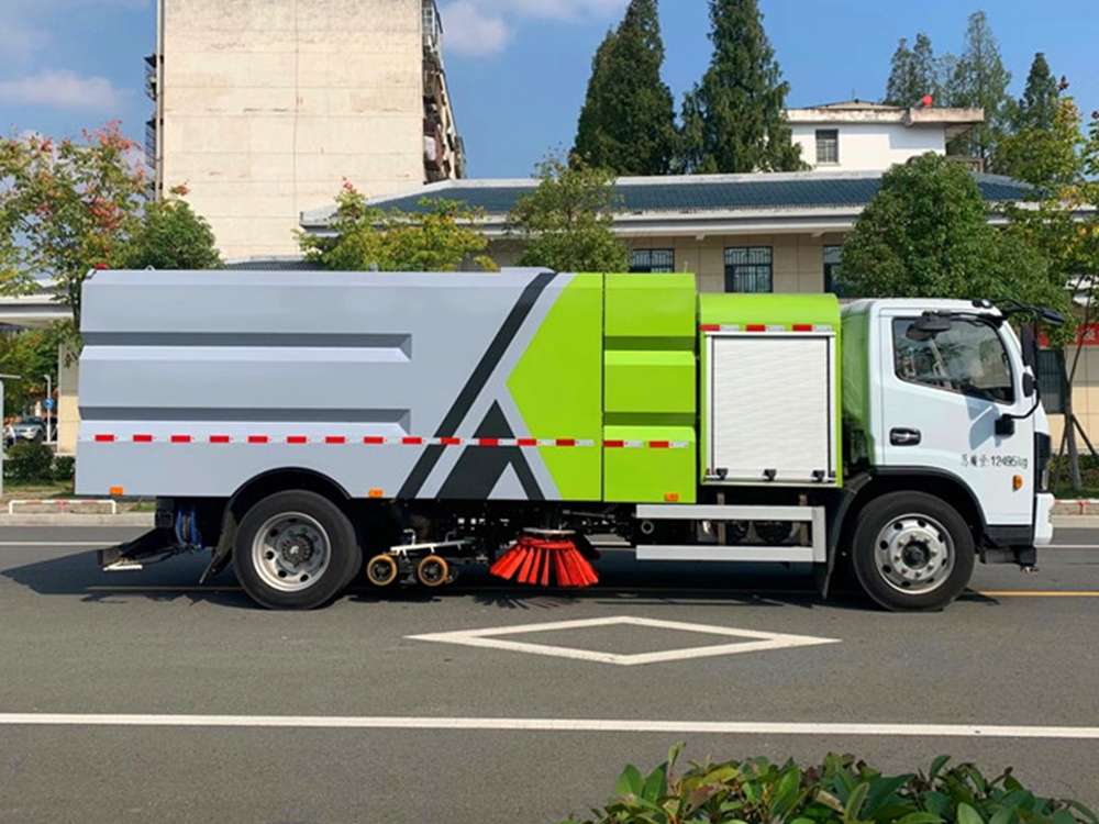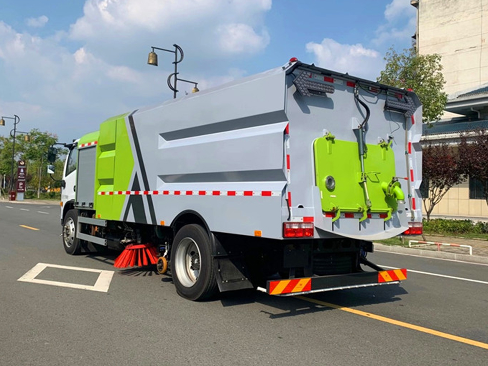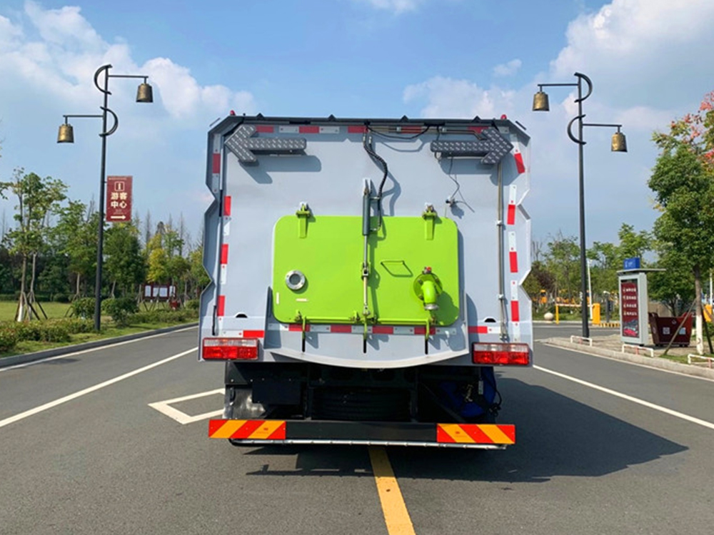 上装配置:底盘电池提供动力,永磁同步电机驱动,可根据需要实时调速,取力操作与底盘行驶系统无任何关联,用车体验感极佳。中置2扫盘,三洋马达,GTM高压水泵,皖液齿轮泵,海普瑞斯液压油缸,万向高压路沿清洗,免维护离心式风机,不锈钢水箱、垃圾箱,不锈钢高压管路、施耐德控制开关、美国传感器、尾部LED箭头灯;垃圾箱、水箱均带防溢或低水位报警装置,倒车及洗扫状态室内监控系统,尾部带电控操作系统,20M高压冲洗卷盘,最大清扫宽度3.5m,高压冲洗21m。 电气系统由底盘车电路专用工作装置操作控制电路组成。