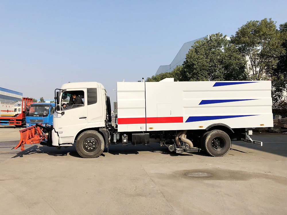东风天锦吸尘车改装推雪板设备的用途是清除道路上的冰雪,广泛使用于高等级公路、城市道路、机场、广场、风景区道路的除雪、融雪、除冰作业,相对于人工除雪,使用机械除雪具有更优的时效性,大幅提高除雪效率,减少人工劳动强度。使用东风天锦吸尘车改装推雪板设备可以在冬季期间投入它们来确保道路上冰雪的清除以及行车的安全。除雪车安装的推雪铲或扫雪滚刷具有越障功能,能够很好的处理各种路面的雪和冰,如浮雪,薄雪,薄冰等,同时它可以在凹凸不平的路面行驶,作业及回避路障,工作效率高。