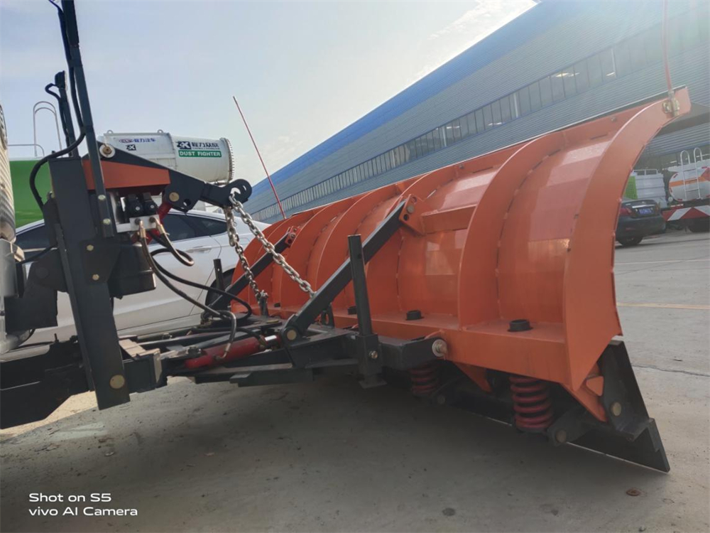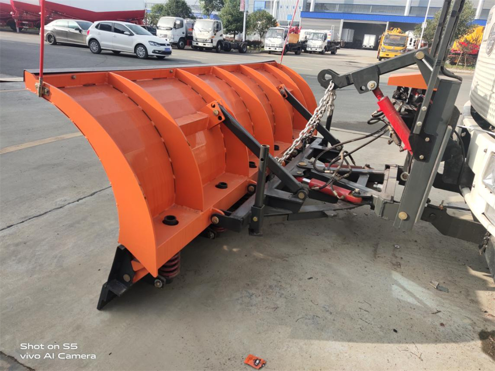 犁板式除雪铲,双向角度可调;可将雪推向一侧,并能起到抛雪功能,除 雪铲设防雪棚,具有防止雪飞溅到作业车挡风玻璃上,以免影响驾驶员视线; |