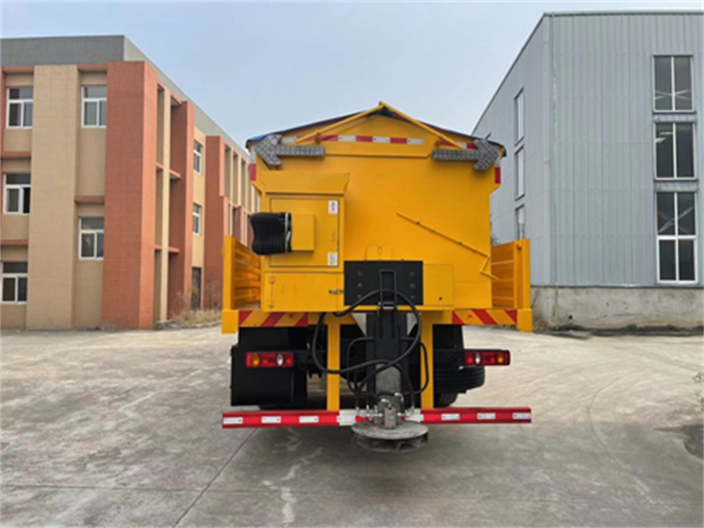 8、结构合理:箱体内特制减压装置、保护设备正常行。箱体采用 V 型料仓,结构简单可靠,使融雪剂自动落料,出料完全,无残留。