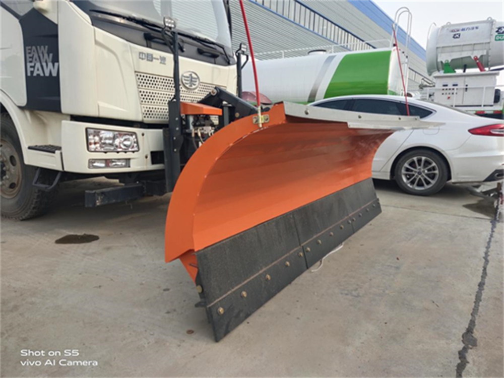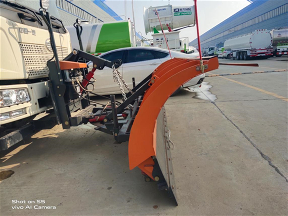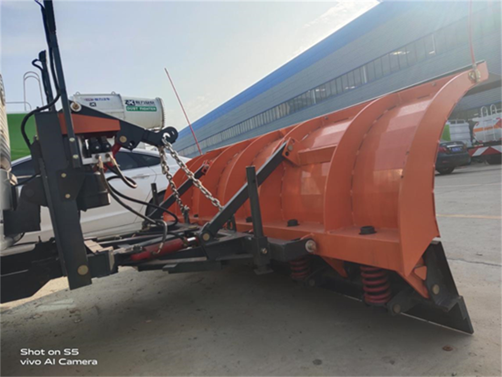 9、设计合理:除雪铲结构合理,可将雪推向一侧,并能起到抛雪功能,除雪铲设防雪棚,具有防止雪飞溅到作业车挡风玻璃上,以免影响驾驶员视线。