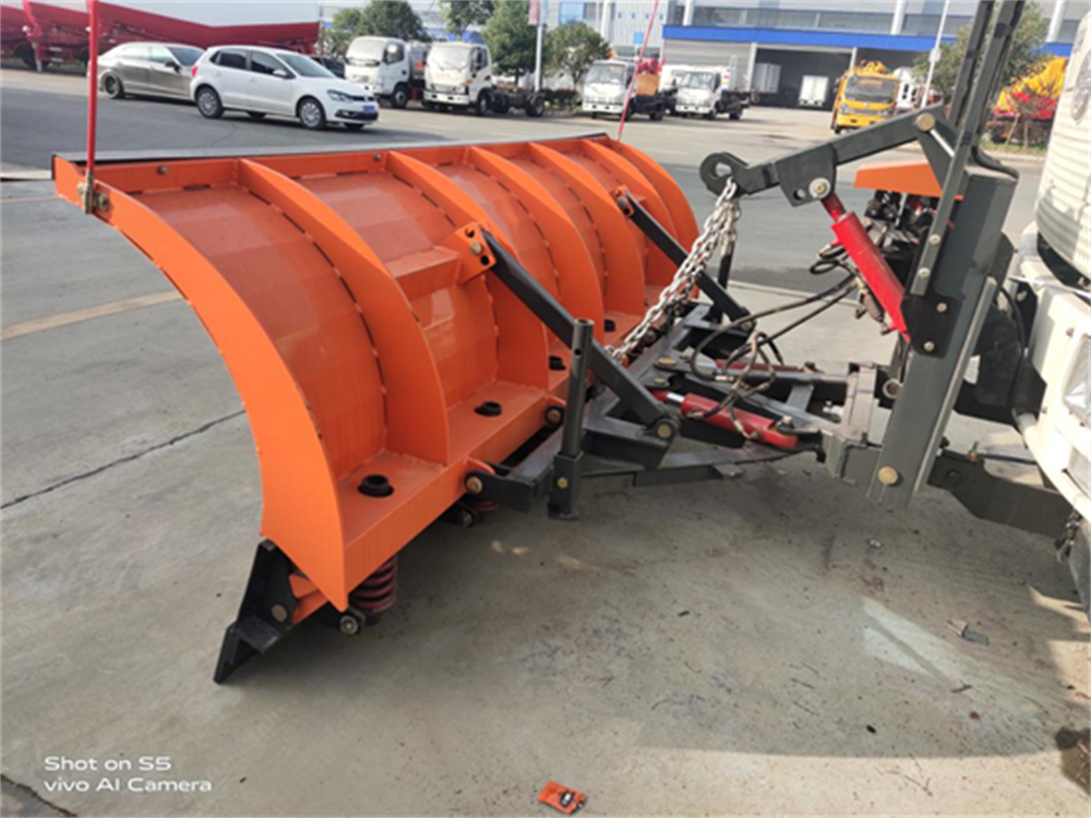 9、设计合理:除雪铲结构合理,可将雪推向一侧,并能起到抛雪功能,除雪铲设防雪棚,具有防止雪飞溅到作业车挡风玻璃上,以免影响驾驶员视线。