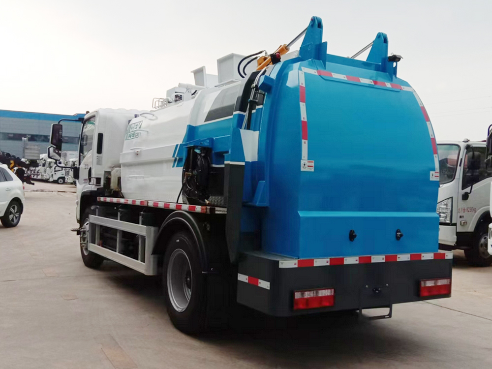 上装配置:餐厨垃圾车装载量6.5方. 五合一集成控制器、气刹ABS系统、前盘后鼓、自调分泵、制动器磨损报警装置;驾驶室:机械式减震座椅(独立式头枕+座椅折叠放平)、双人座椅(靠背分体)、电动升降门窗、自动恒温空调、中控锁、杆式后视镜、倒车影像、远程终端、灭火器安装支架(1kg)、发光陕汽标徽;多功能方向盘-10寸多媒体屏、LED大灯、倒车雷达;弧形箱体,箱体材质不锈钢 4mm。国产优质液压件:长源油泵,湖南鸿辉多路阀,国产液压油缸。推铲卸料(不带举升功能),具有干湿分离功能,加热功能。液压后盖带密封条。后门液压锁紧。链条式提升机,可挂1只240L国标塑料垃圾桶。进料口盖液压开启和关闭。CAN总线控制系统,具有一键操作功能:外部手动、驾驶室内集中电控及外部电控;均带有后门锁紧与后盖开关的操作带防误操作。箱体带清洗装置(液压马达带动高压泵、带水箱)。