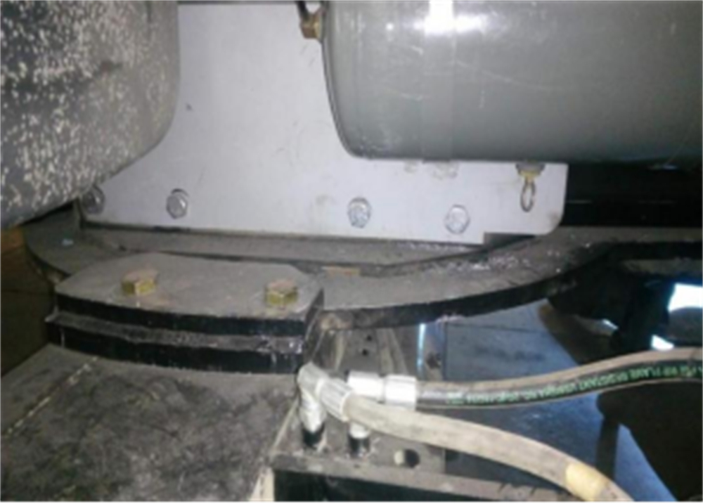 底盘车辆前后轮中间位置带有连接架,连接架与除冰铲通过8个M20螺栓快速连接。