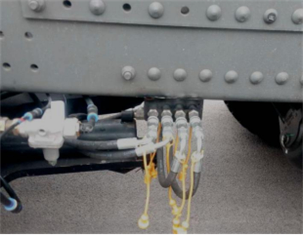 将腰铲举升及转向的油管接头按标记与位于车辆中部的四个G3/8快速接头(小)对接。